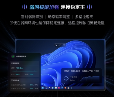 除了超级桌面,向日葵16还在远程控制的核心体验上大幅优化。远控发起速度更快,延迟更低,即便在高铁、地铁、停车场等弱网环境下依旧稳定流畅。